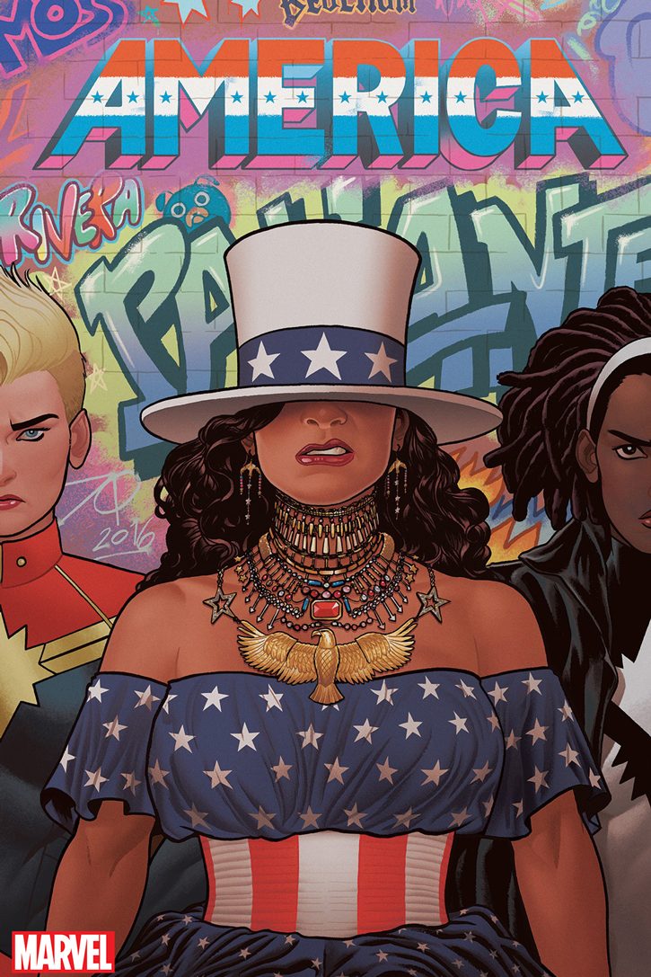 I’m Gabby Rivera (she/her) and I’m a Bronx-born, queer Latinx writer. Currently, I’m writing AMERICA for Marvel comics. Writing Marvel’s first Latina lesbian character, America Chavez, is the most wild ride ever and I’m just happy to be here. Also, my YA novel, Juliet Takes a Breath is a thing you should read and then send a copy to your gay baby cousin. Anyway, Hi.